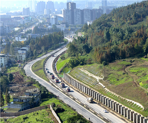 國道318線雅安至二郎山——雅安城區(qū)過境段(北外環(huán)線)項目是“4·20”蘆山強烈地震災后重建民生項目。該工程起于姚橋新區(qū)雅洪公路交叉口,東連省道305線,沿光華山西側(cè)、金鳳山南側(cè)布置,穿青鼻山隧道,順碉堡山南側(cè)修建,止于康藏路西端,順接國道108線和318線,道路全長11.8公里,總投資11.96億元。道路設(shè)計為雙向4車道,設(shè)計時速60Km/h,,道路寬度從17米至49米不等。
