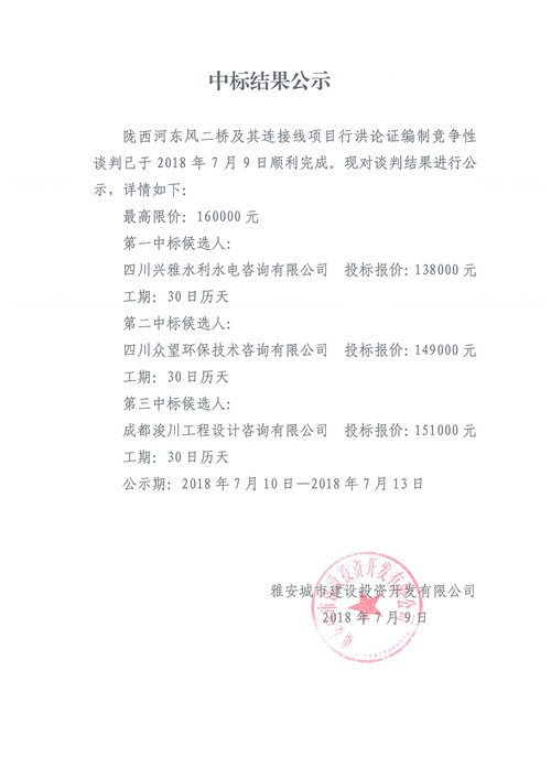 隴西河東風二橋及其連接線項目行洪論證報告編制中標結果公示