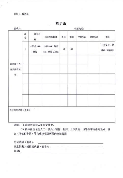 雅安市合江鎮(zhèn)太坪村道路燈詢價(jià)函