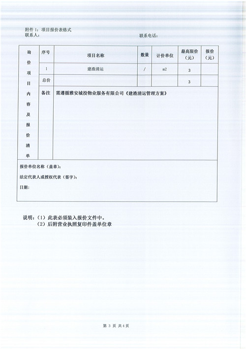 附件:文曲新座建渣清運(yùn)詢價(jià)函