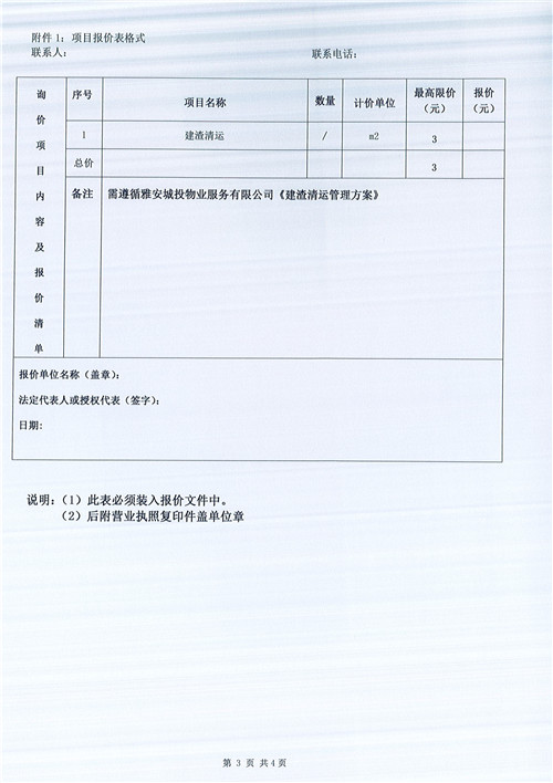 文曲新座建渣清運(yùn)詢價函