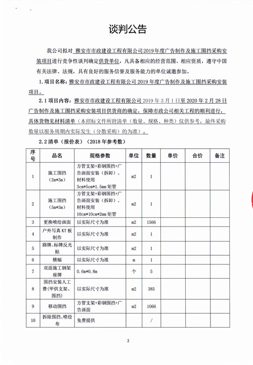 市政公司2019年度廣告制作及施工圍擋采購(gòu)安裝項(xiàng)目競(jìng)爭(zhēng)性談判公告