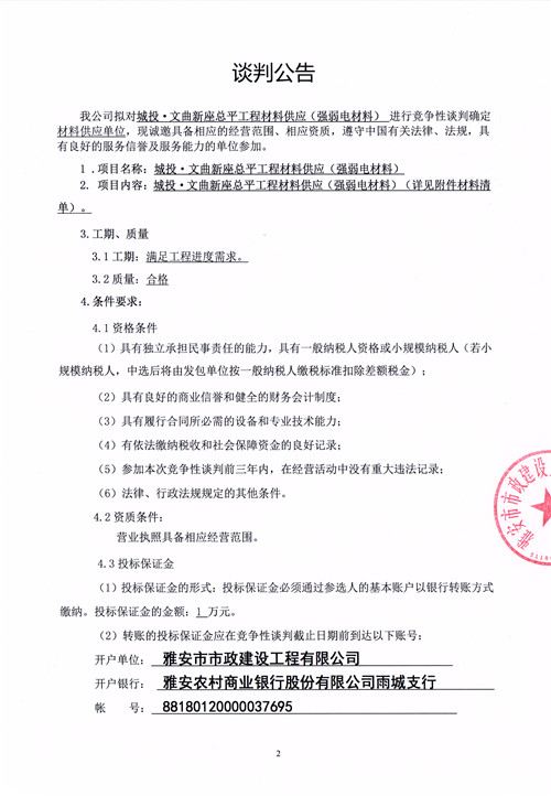 城投·文曲新座總平工程材料供應(yīng)(強弱電材料)競爭性談判公告