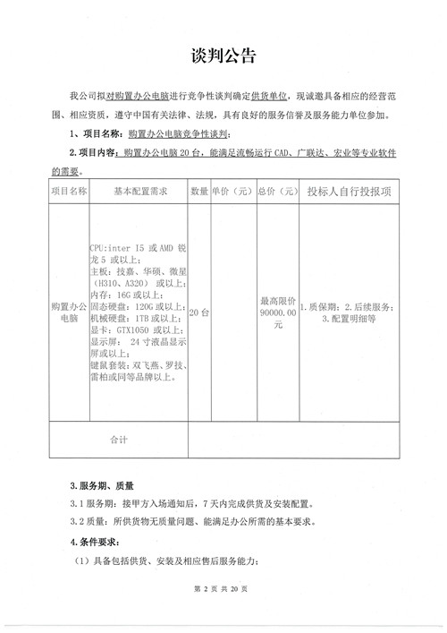 城投建工購置辦公電腦確認供貨單位的競爭性談判公告