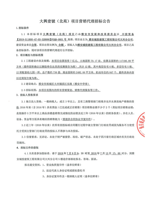 大興壹號(北苑)項目營銷代理招標(biāo)公告