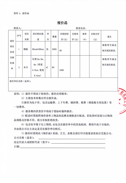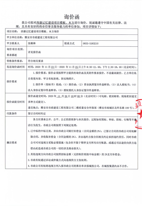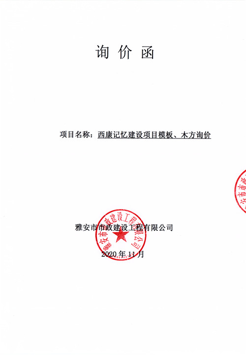 市政公司西康記憶建設(shè)項(xiàng)目模板、木方詢價(jià)函