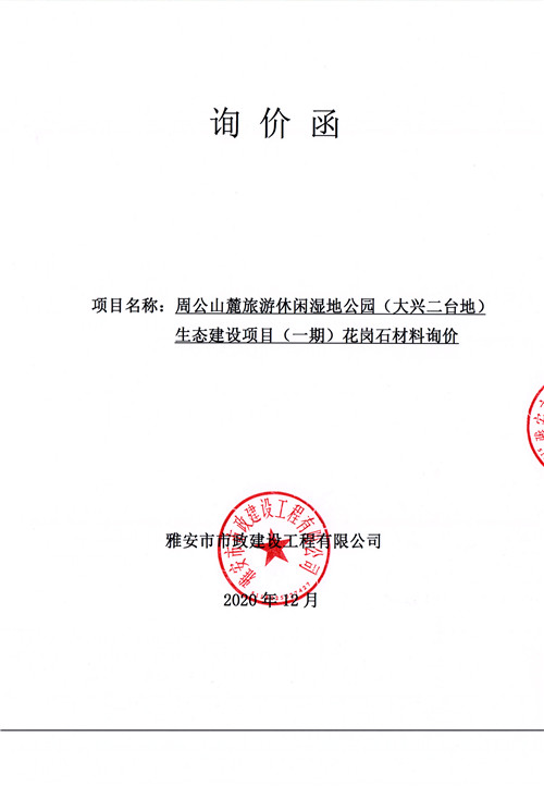 市政公司 周公山麓旅游休閑濕地公園(大興二臺(tái)地)生態(tài)建設(shè)項(xiàng)目(一期)花崗石材料詢價(jià)函