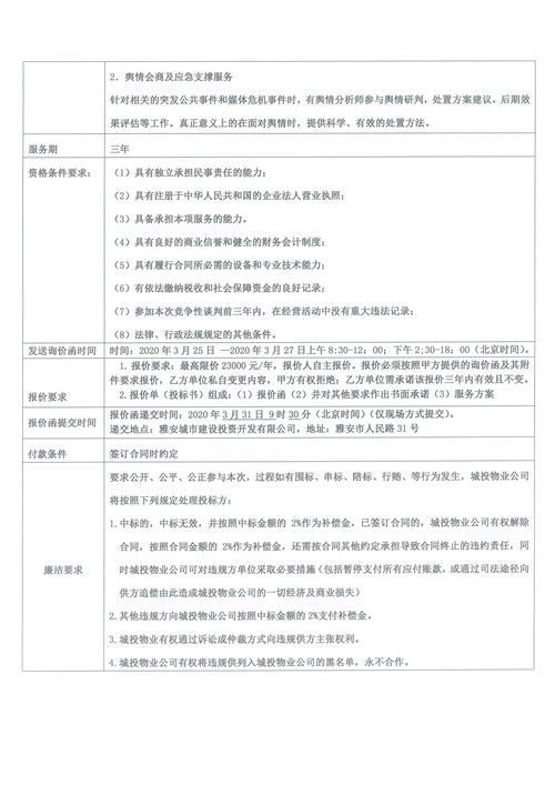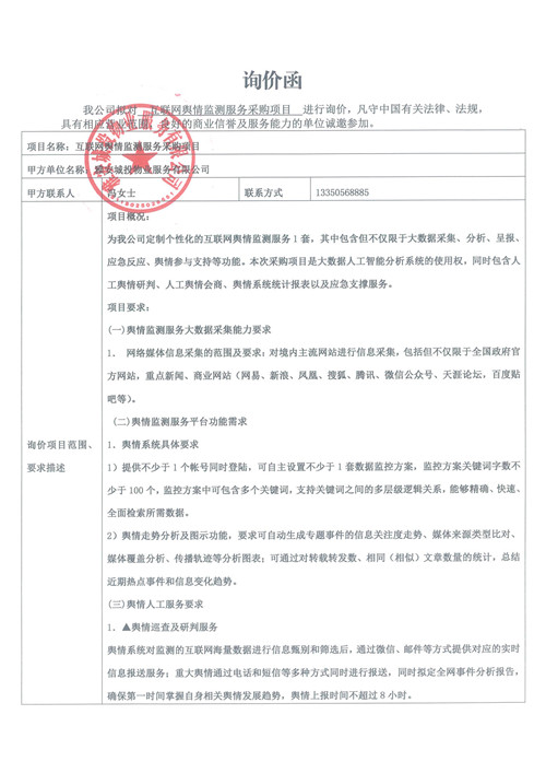 城投物業(yè)公司互聯(lián)網(wǎng)輿情監(jiān)測服務(wù)采購項目詢價函