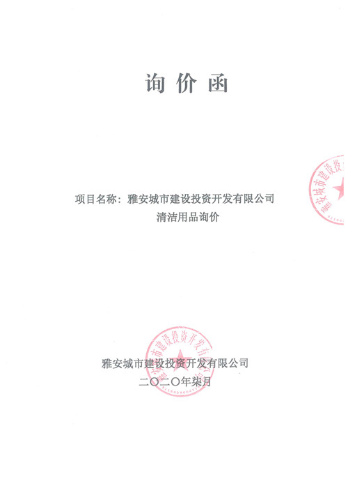雅安城市建設(shè)投資開(kāi)發(fā)有限公司清潔用品詢(xún)價(jià)函