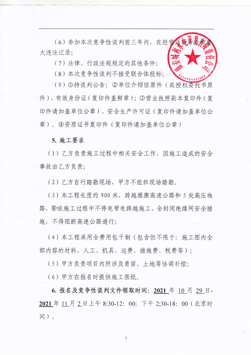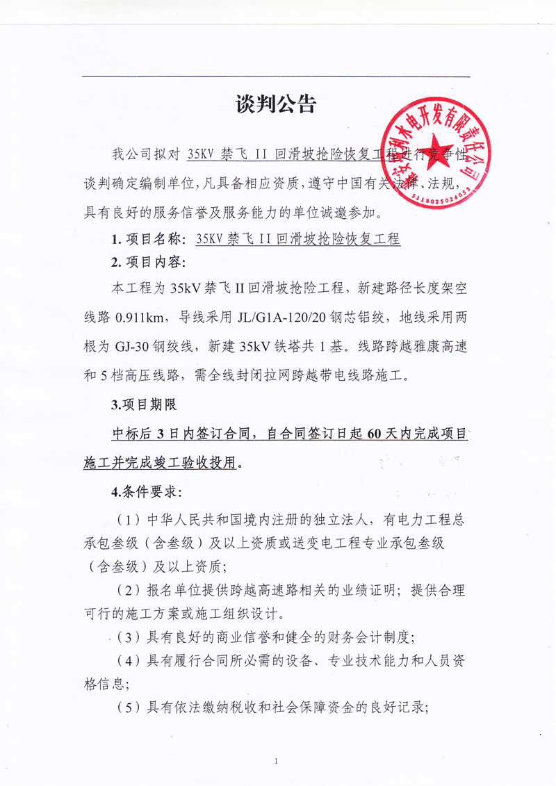 城利水電公司35kv禁飛II回滑坡?lián)岆U恢復(fù)工程競爭性談判