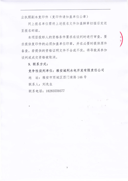城投水電公司天全片區(qū)電站電能銷(xiāo)售競(jìng)爭(zhēng)性談判公告
