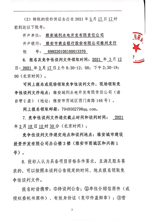 城利水電公司泗坪片區(qū)電站電能銷售競(jìng)爭性談判公告