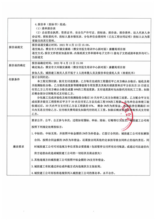 城投建工公司項目水電安裝工程勞務(wù)分包詢價函