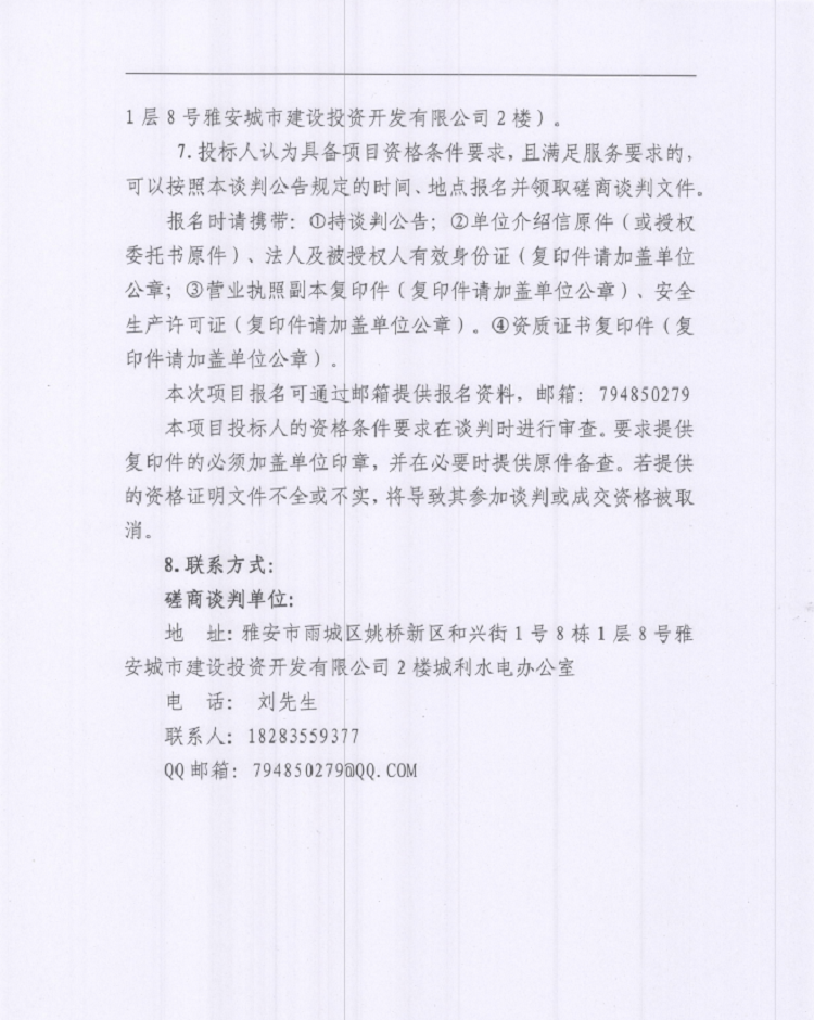雅安城利水電公司2022年度水輪發(fā)電機(jī)組檢修工程談判磋商公告