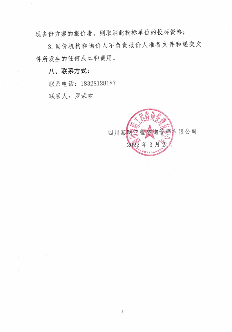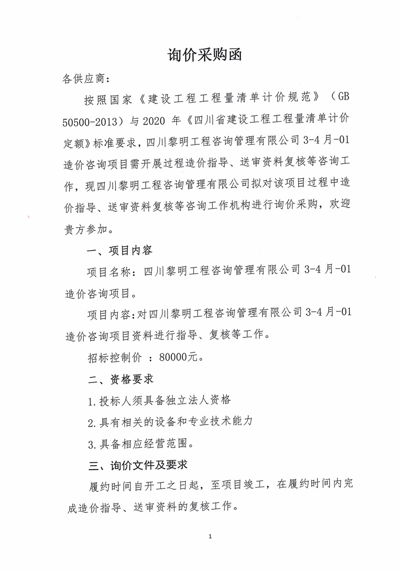 四川黎明工程咨詢管理有限公司3-4月-01造價(jià)咨詢項(xiàng)目詢價(jià)采購(gòu)函