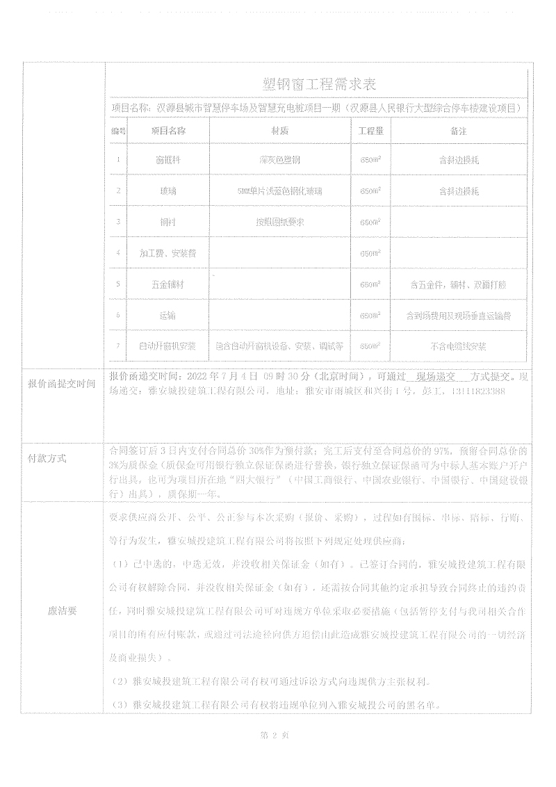 漢源縣城市智慧停車場及智慧充電樁項(xiàng)目一期漢源縣城人民銀行大型綜合樓停車樓建設(shè)項(xiàng)目塑鋼窗采購競價(jià)公告
