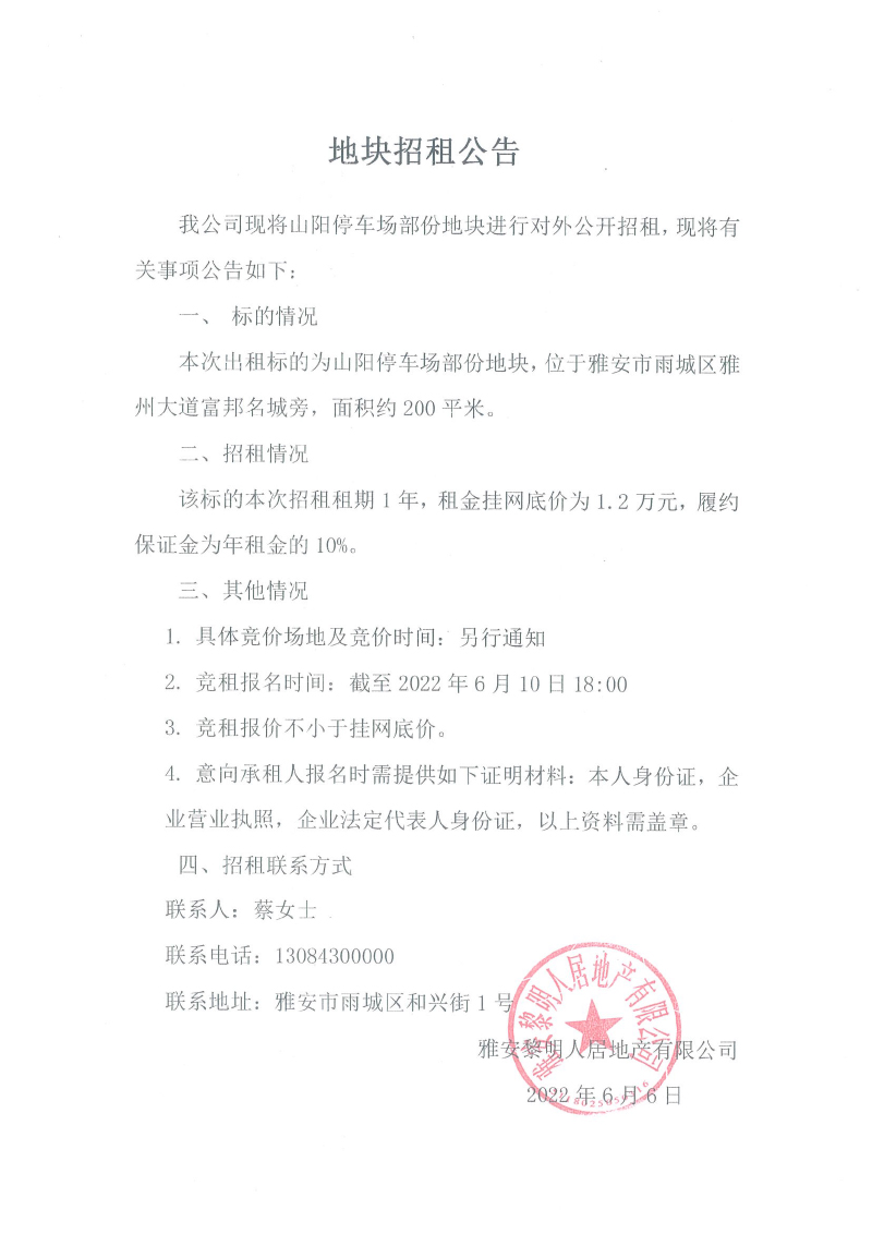 山陽(yáng)停車(chē)場(chǎng)部分地塊對(duì)外招租公告