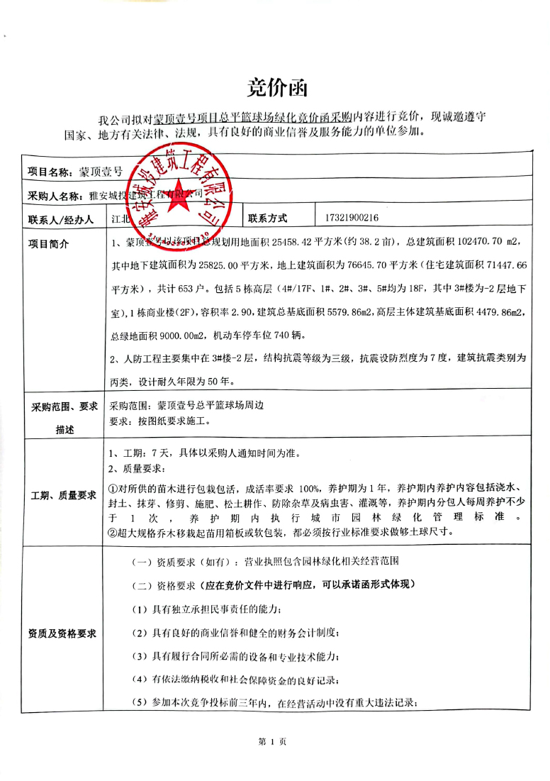 2.蒙頂壹號總平籃球場周邊綠化報價函