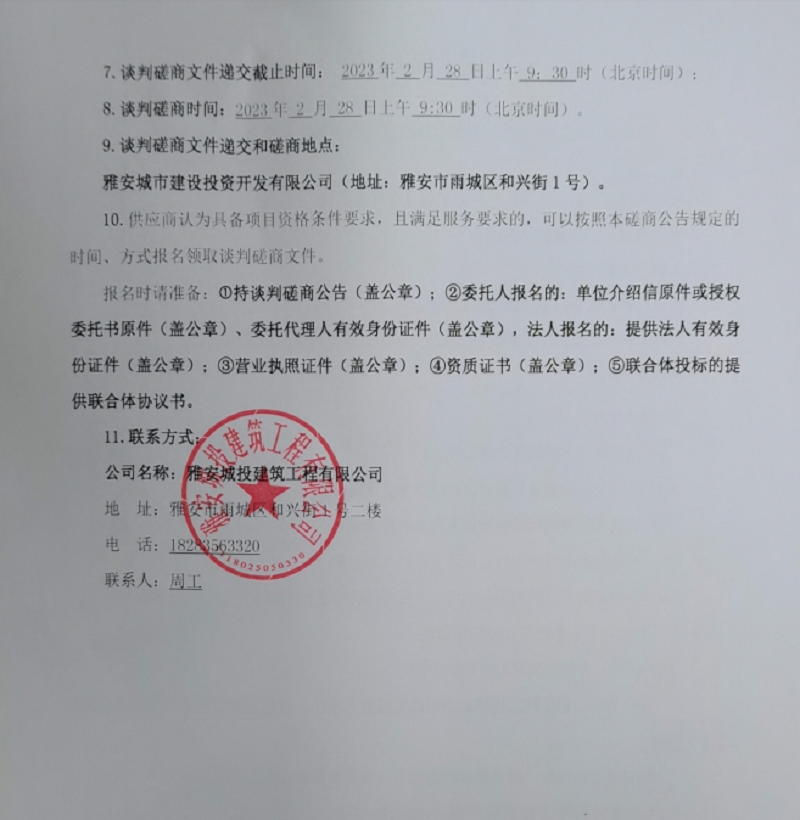 雅安行政中心戶外廊架建設(shè)項(xiàng)目主廊架制作安裝談判磋商公告