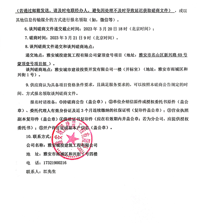 蒙頂壹號項(xiàng)目亮化工程建設(shè)采購磋商公告