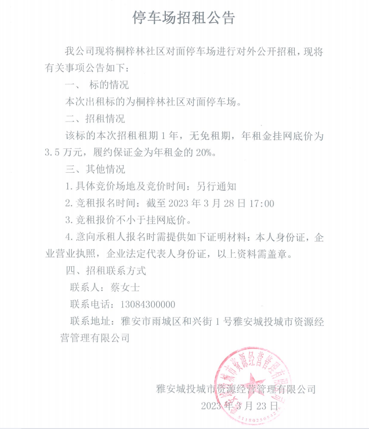 桐梓林社區(qū)對面停車場招租公告