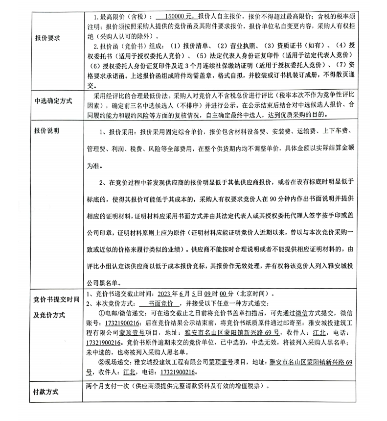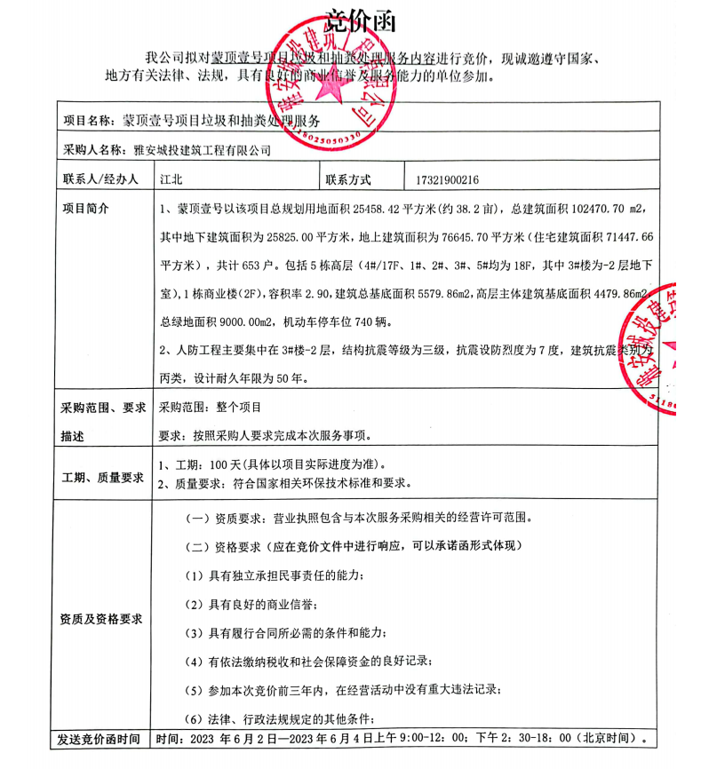 蒙頂壹號項(xiàng)目垃圾和抽糞處理服務(wù)競價(jià)公告