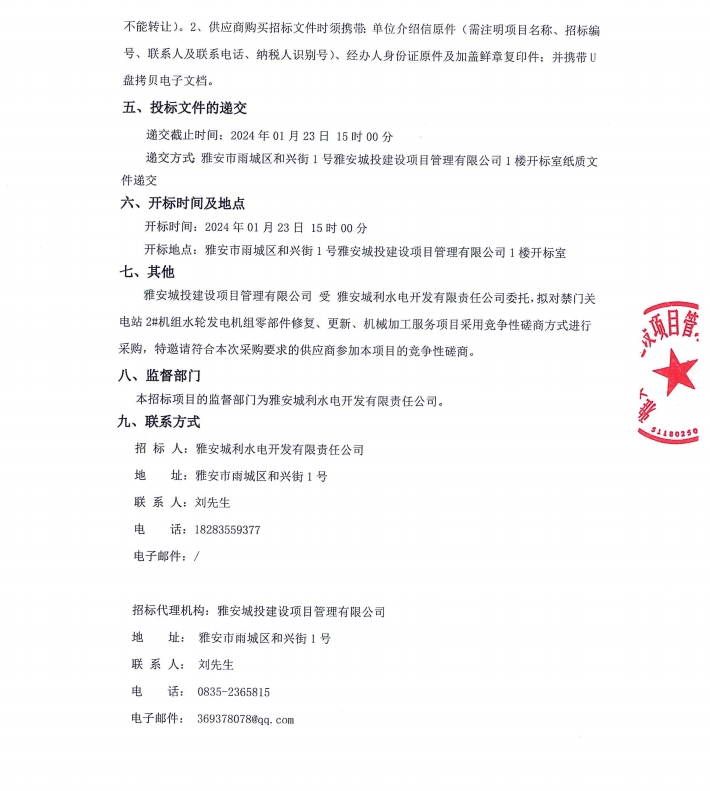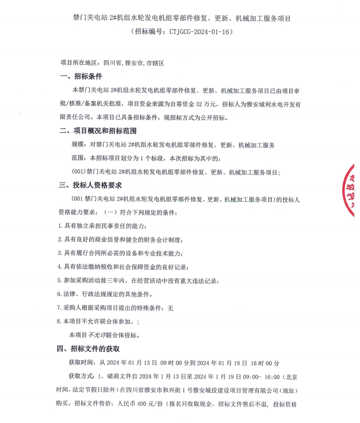 禁門關(guān)電站2#機組水輪發(fā)電機組零部件修復、更新、機械加工服務(wù)項目公告
