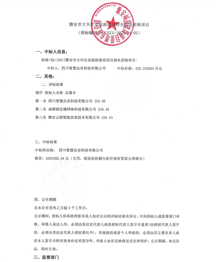 雅安市大興生態(tài)旅游建設(shè)項目弱電采購項目公告