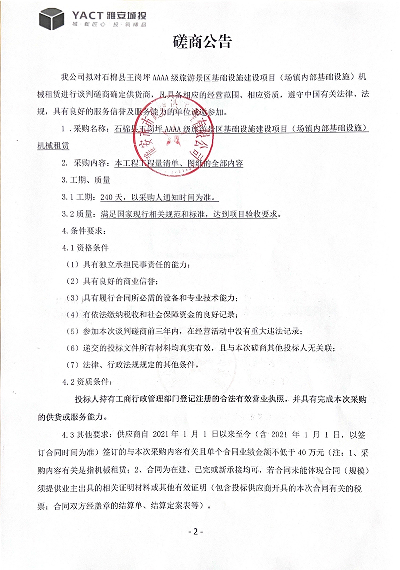 石棉縣王崗坪AAAA級旅游景區(qū)基礎設施建設項目(場鎮(zhèn)內部基礎設施)機械租賃