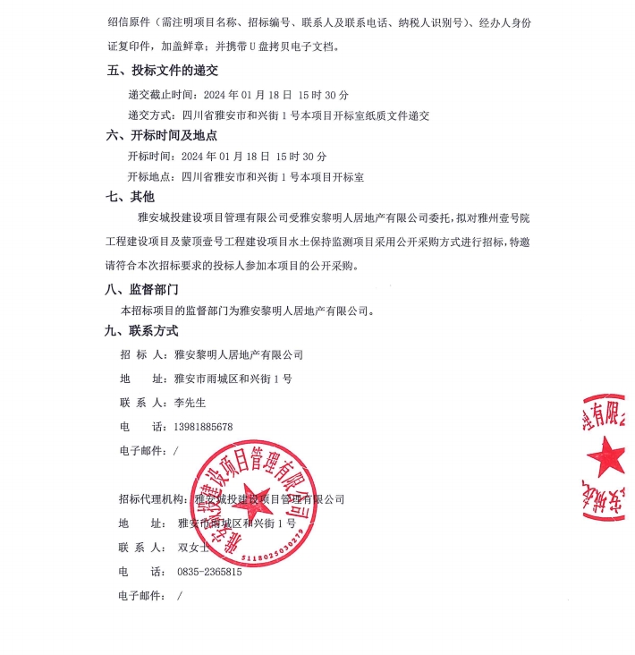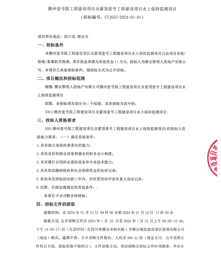 雅州壹號院工程建設項目及蒙頂壹號工程建設項目水土保持監(jiān)測項目公告