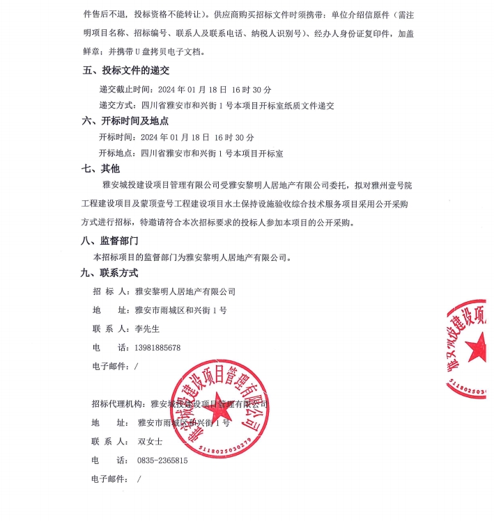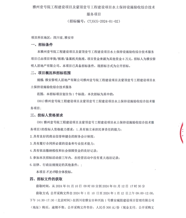 雅州壹號院工程建設(shè)項(xiàng)目及蒙頂壹號工程建設(shè)項(xiàng)目水土保持設(shè)施驗(yàn)收綜合技術(shù)服務(wù)項(xiàng)目公告