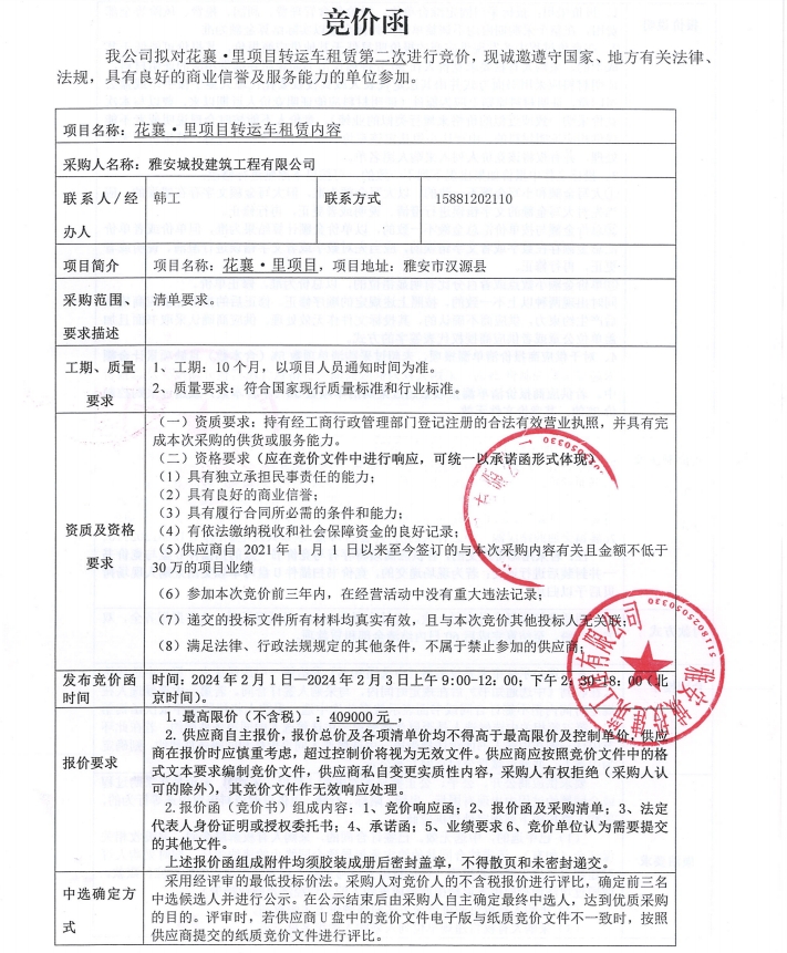 花襄·里項(xiàng)目轉(zhuǎn)運(yùn)車租賃(第二次)競價(jià)公告