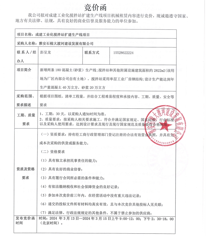 成建工業(yè)化攪拌站擴(kuò)建生產(chǎn)線項目機(jī)械租賃內(nèi)容競價公告