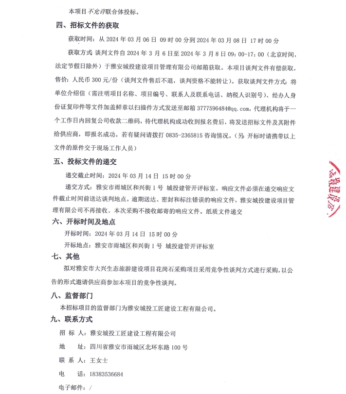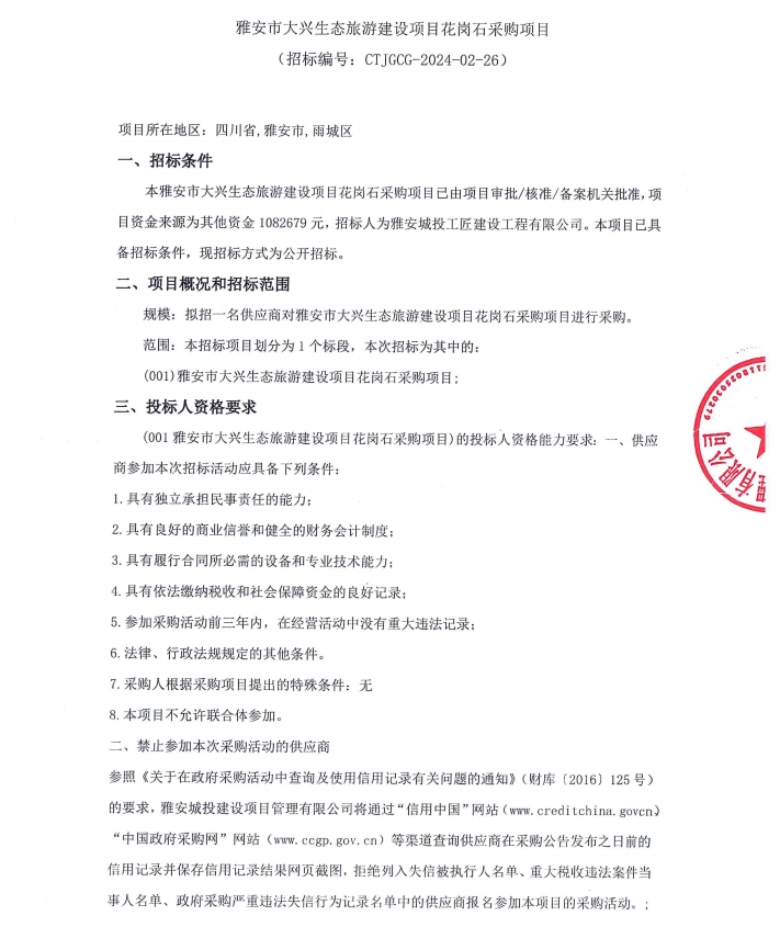 雅安市大興生態(tài)旅游建設項目花崗石采購項目公告