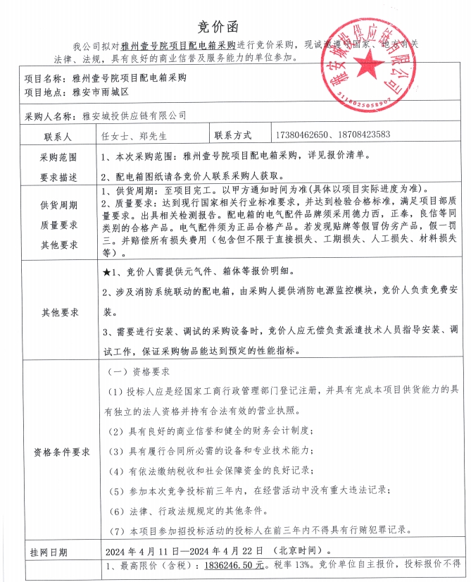 附件1:響應文件格式-雅州壹號院項目配電箱采購