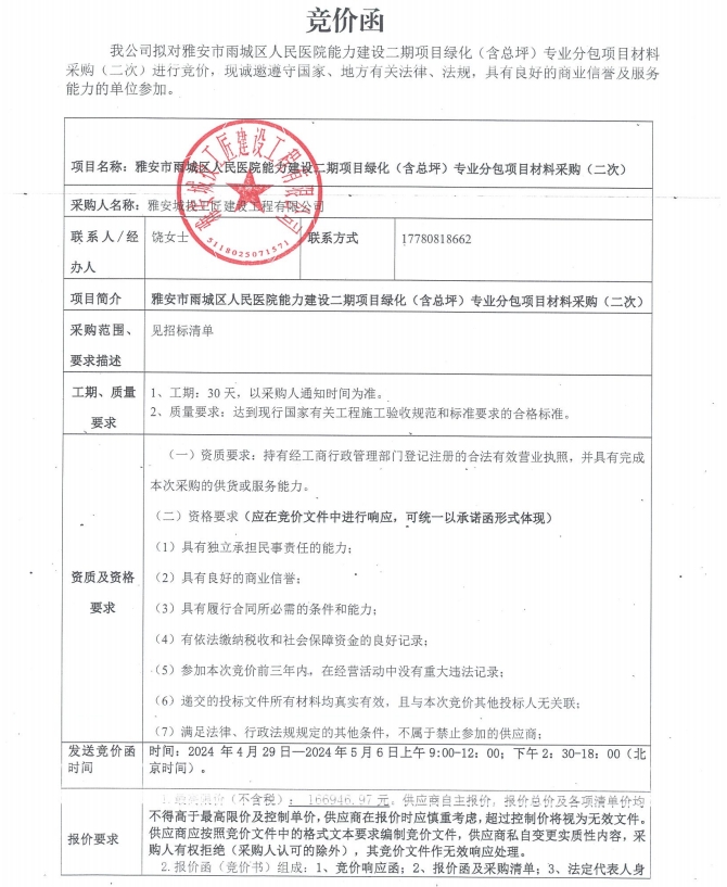附件:競價函-雅安市雨城區(qū)人民醫(yī)院能力建設(shè)二期項目綠化(含總坪)專業(yè)分包項目材料采購(二次)