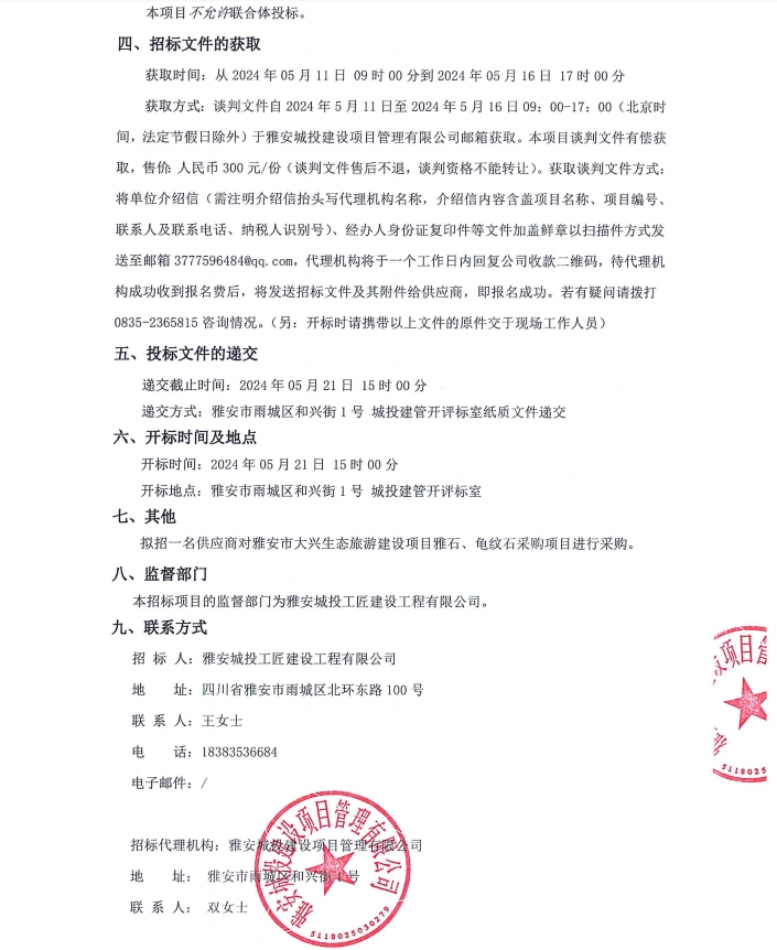 雅安市大興生態(tài)旅游建設項目雅石、龜紋石采購項目公告