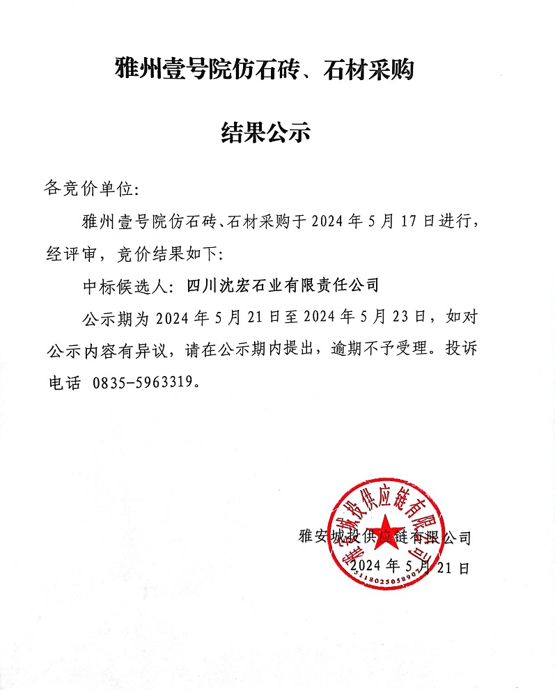 雅州壹號(hào)院仿石磚、石材采購(gòu)結(jié)果公示