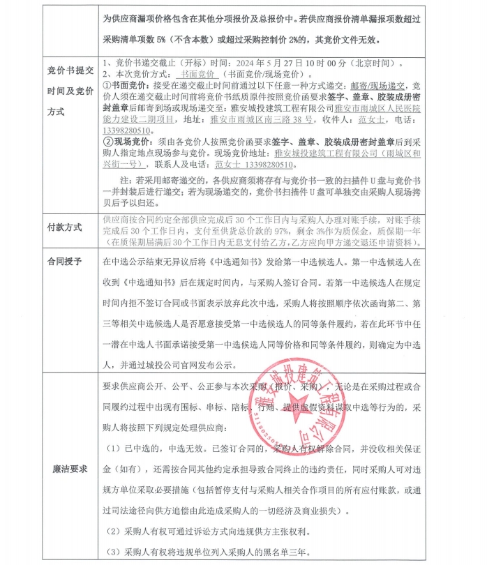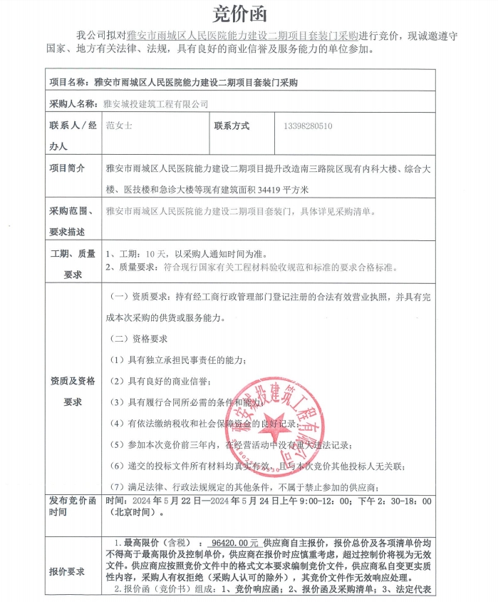 雅安市雨城區(qū)人民醫(yī)院能力建設(shè)二期項目套裝門采購競價公告