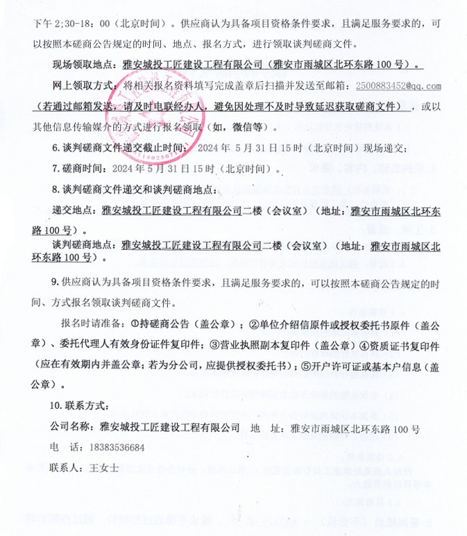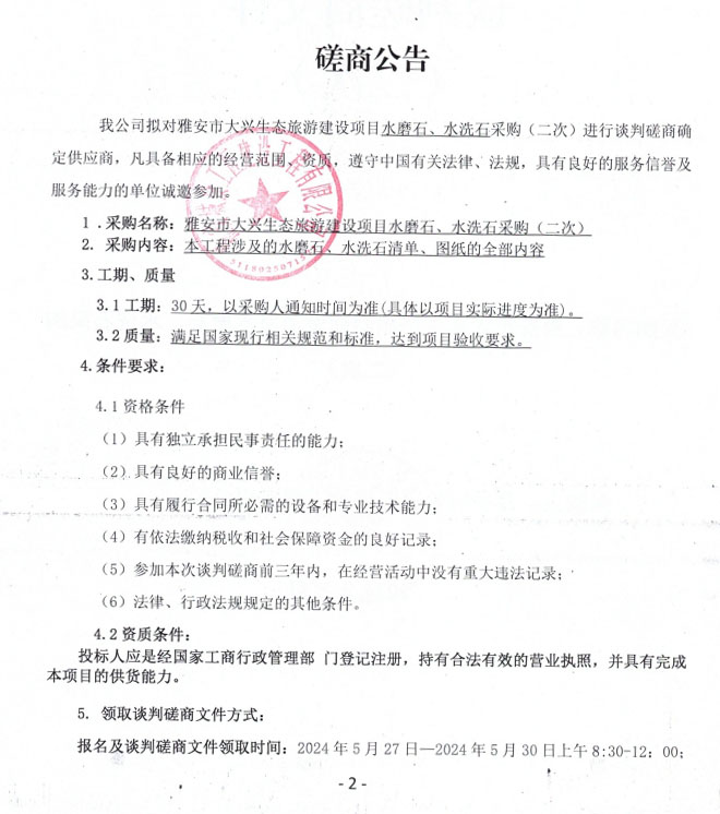 雅安市大興生態(tài)旅游建設(shè)項目水磨石、水洗石采購(二次)磋商公告