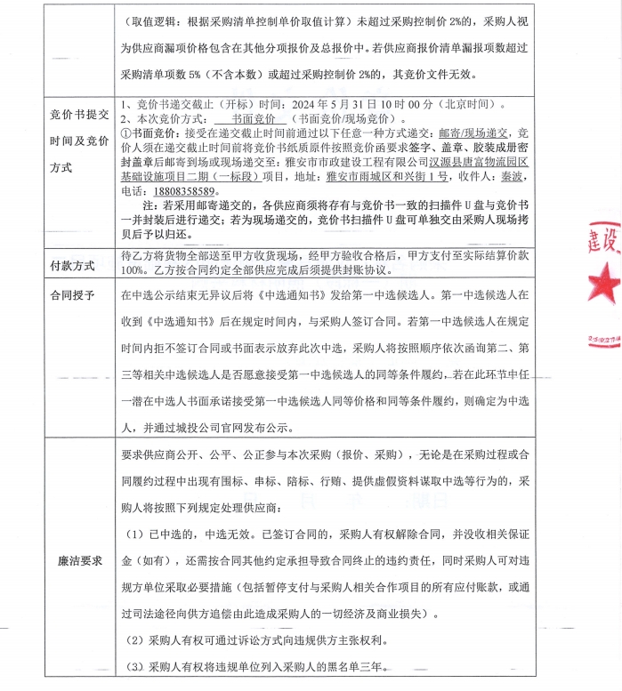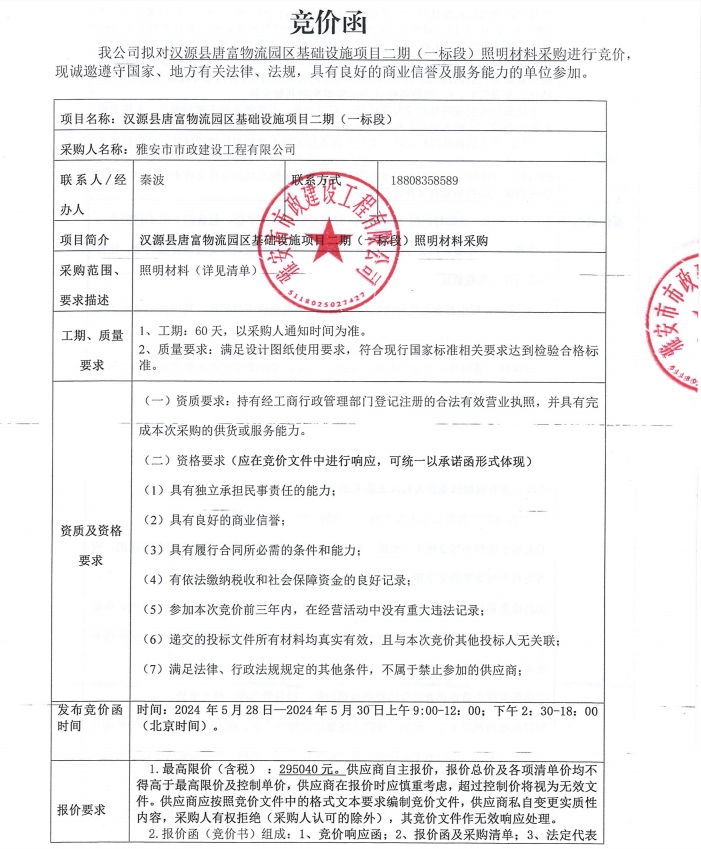 漢源縣唐富物流園區(qū)基礎(chǔ)設(shè)施項目二期(一標(biāo)段)照明材料采購競價公告