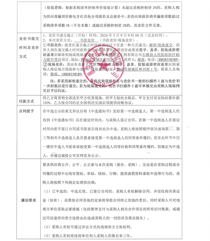 石棉縣人民醫(yī)院醫(yī)療能力提升項目防火巖面板等材料采購內(nèi)容競價公告