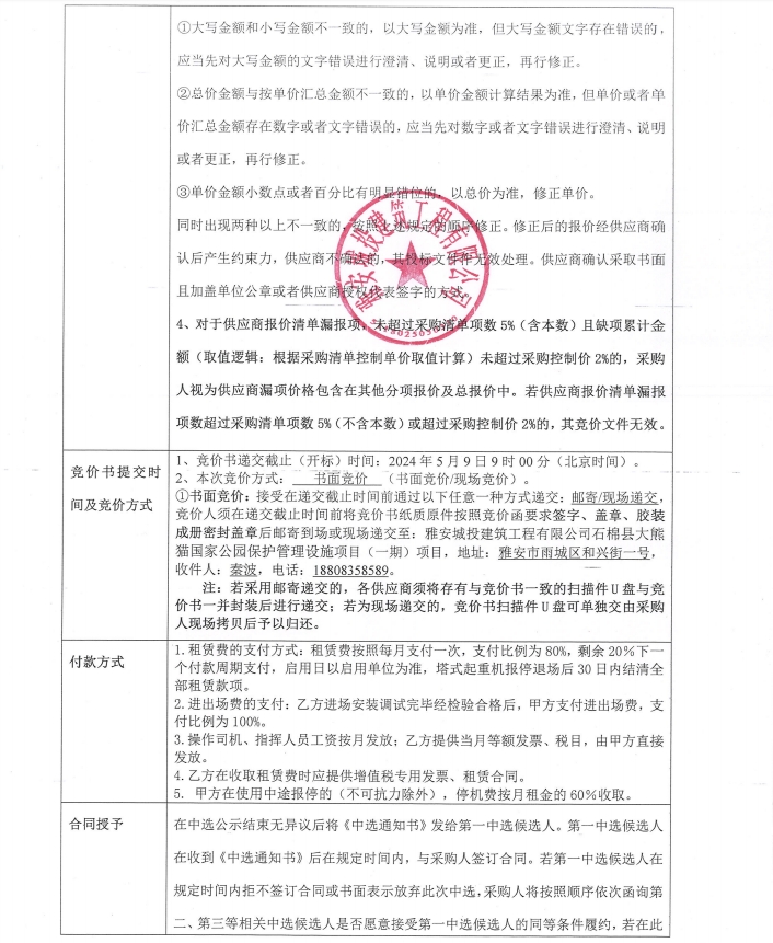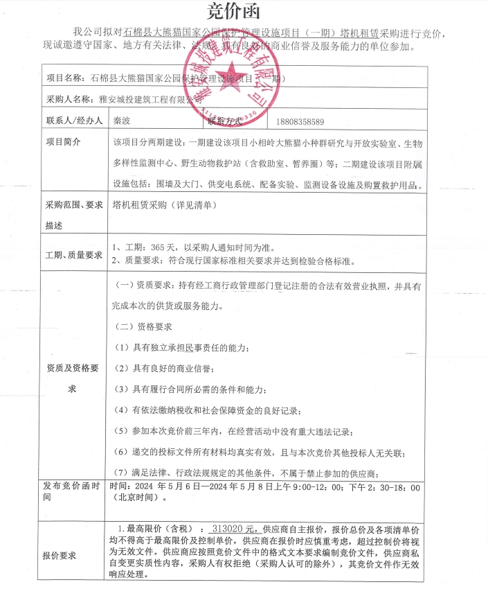 石棉縣大熊貓國(guó)家公園保護(hù)管理設(shè)施項(xiàng)目(一期)塔機(jī)租賃采購(gòu)競(jìng)價(jià)公告