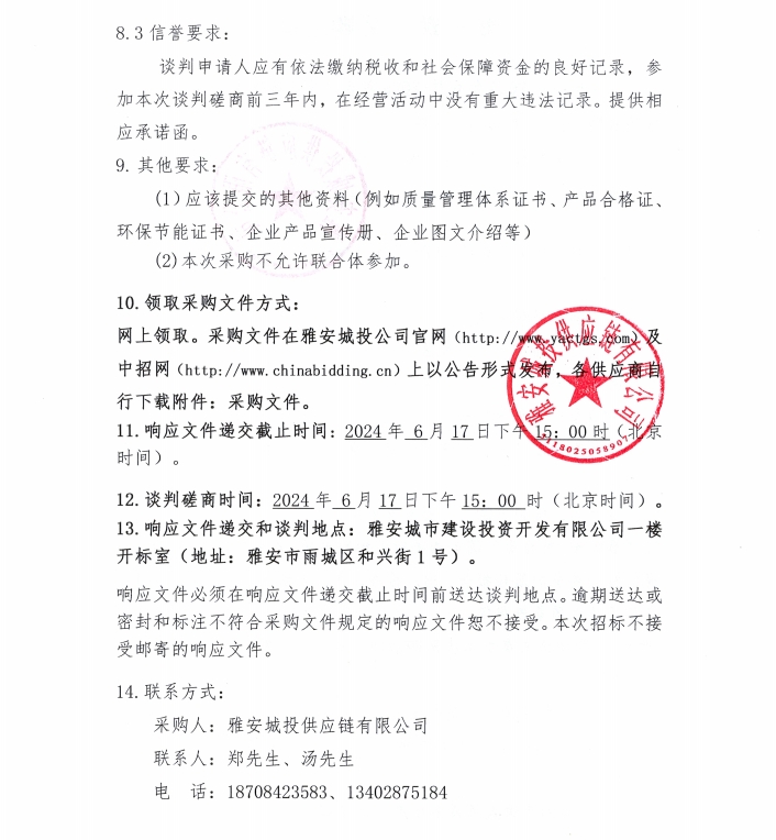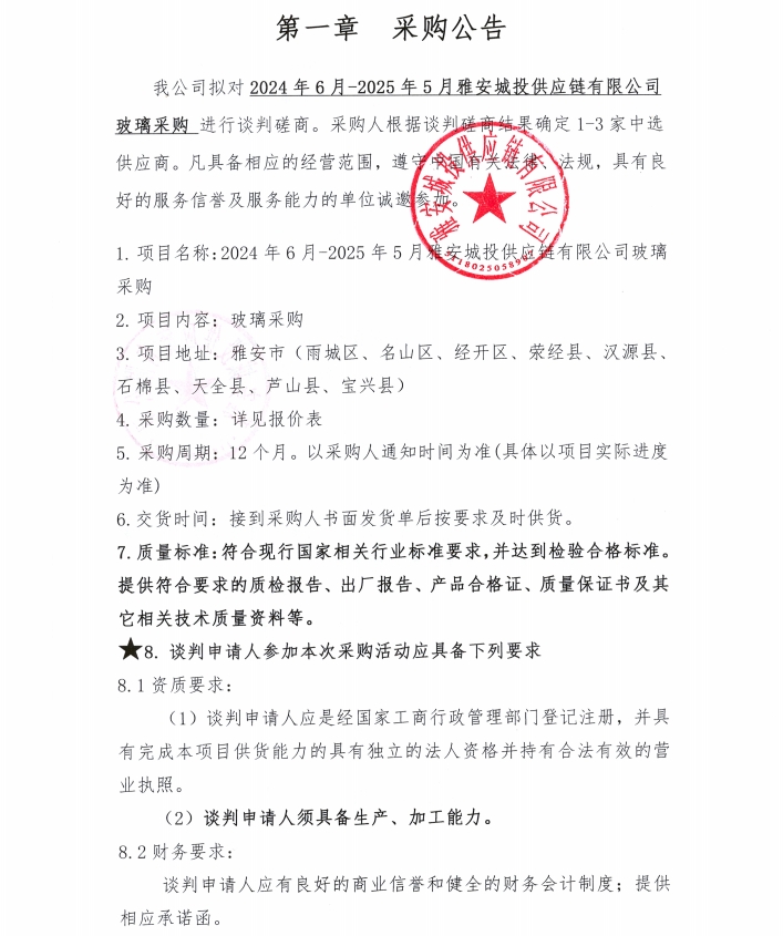 2024年6月-2025年5月雅安城投供應(yīng)鏈有限公司玻璃采購公告