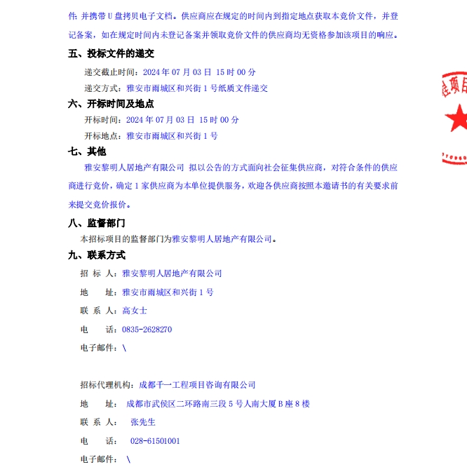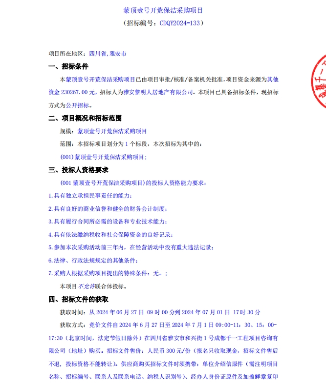 蒙頂壹號開荒保潔采購項目公告