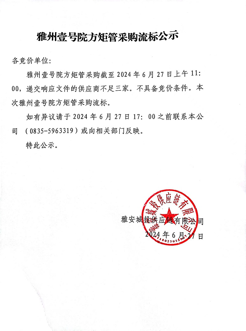 雅州壹號院方矩管采購流標(biāo)公示
