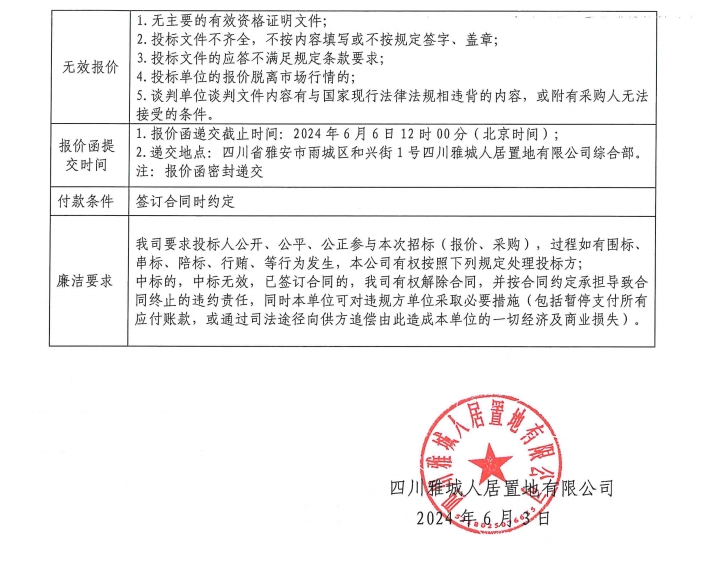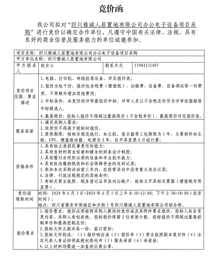 四川雅城人居置地有限公司辦公電子設(shè)備項目采購競價公告