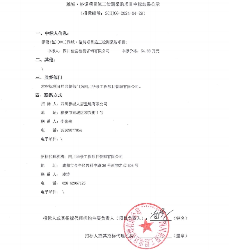 雅城·格調(diào)項(xiàng)目施工檢測(cè)采購(gòu)項(xiàng)目中標(biāo)結(jié)果公示