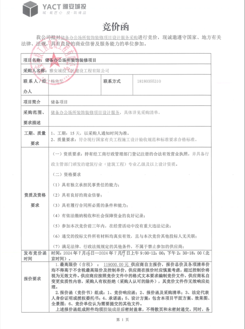 儲(chǔ)備辦公場(chǎng)所裝飾裝修項(xiàng)目競(jìng)價(jià)公告