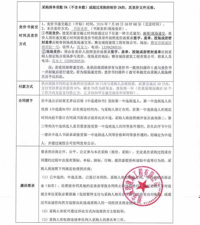 雅安市雨城區(qū)大興一號公寓裝修項目潔廚具材料采購(第二次)競價公告